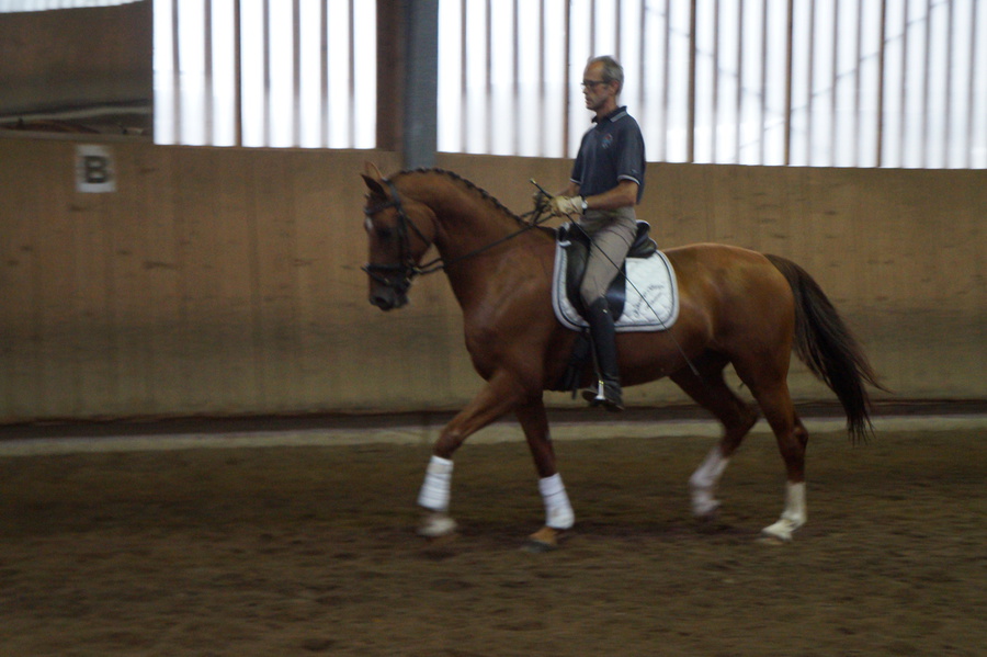 Sir Nice ist seit einigen Wochen bei mir in der Ausbildung und entwickelt sich positiv. Er zeigt bereits gute Ansätze für Seitengänge.
